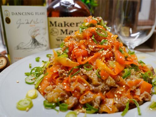 今日は珍しく牛肉を使ったレシピです(*・ᴗ・*)و! と言っても外国産のリーズナブルな牛バラ肉を使い、柔らかく仕上げるコスパ良し仕様です(*・ᴗ・*)و! 安めのお肉も酒で短時間漬けておくことでめっちゃ柔らかく仕上がりますよ♬ ピーラーで仕上げるリボンにんじ…