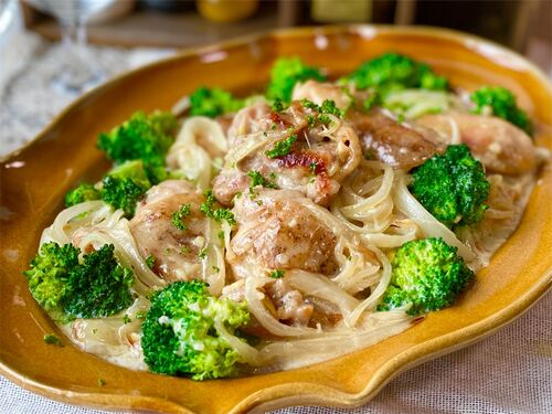 今日はジューシーな鶏もも肉と玉ねぎ、ブロッコリーの組み合わせ( ´͈ ᗜ `͈ )♡ にんにくをきかせたやみつき系のクリームソースで、ご飯もお酒も進みまくるやつです( ´͈ ᗜ `͈ )♡ 滅多に買わない生クリームを使っていますが、1パック使い切り、わざわざ買う価値…