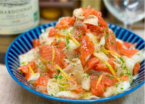今日はおつまみにピッタリなスモークサーモンと大根を使った1品をご紹介します(*・ᴗ・*)و! さっぱり甘酸っぱい味わいにゆずの香りが最高です♬ 大根はピーラーで薄くスライスすることで短時間で味が染みやすく、食べやすくなります( •̀ .̫ •́ )✧ めっちゃワイ…