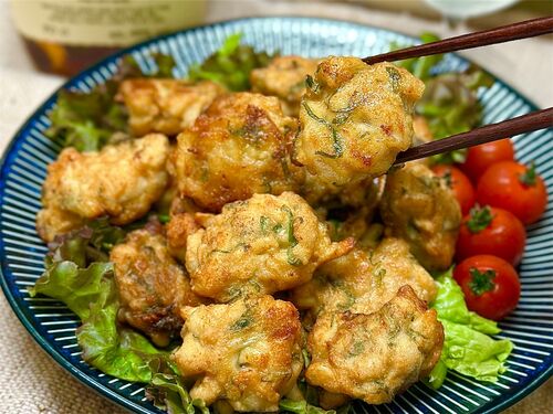 今日は鶏むね肉を使って作る、みんな大好きチキンナゲットをご紹介します(*・ᴗ・*)و! チーズににんにくをきかせたがっつり系味付けに大葉のアクセントがたまらないチキンナゲットです♬ お子さまから大人までみんな大喜び間違いなしです✧*。(ˊᗜˋ*) アツアツはも…