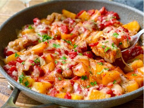 今日は鶏肉とじゃがいもを使ったやみつきレシピ、とろーりチーズのトマト煮込みをご紹介します(*・ᴗ・*)و! 鶏肉は風味を際立たせるために、皮目に香ばしく焼き目をつけます! じゃがいもはレンチンで火を通すことで、煮込み時間10分ですみますよ♬ コンソメベ…